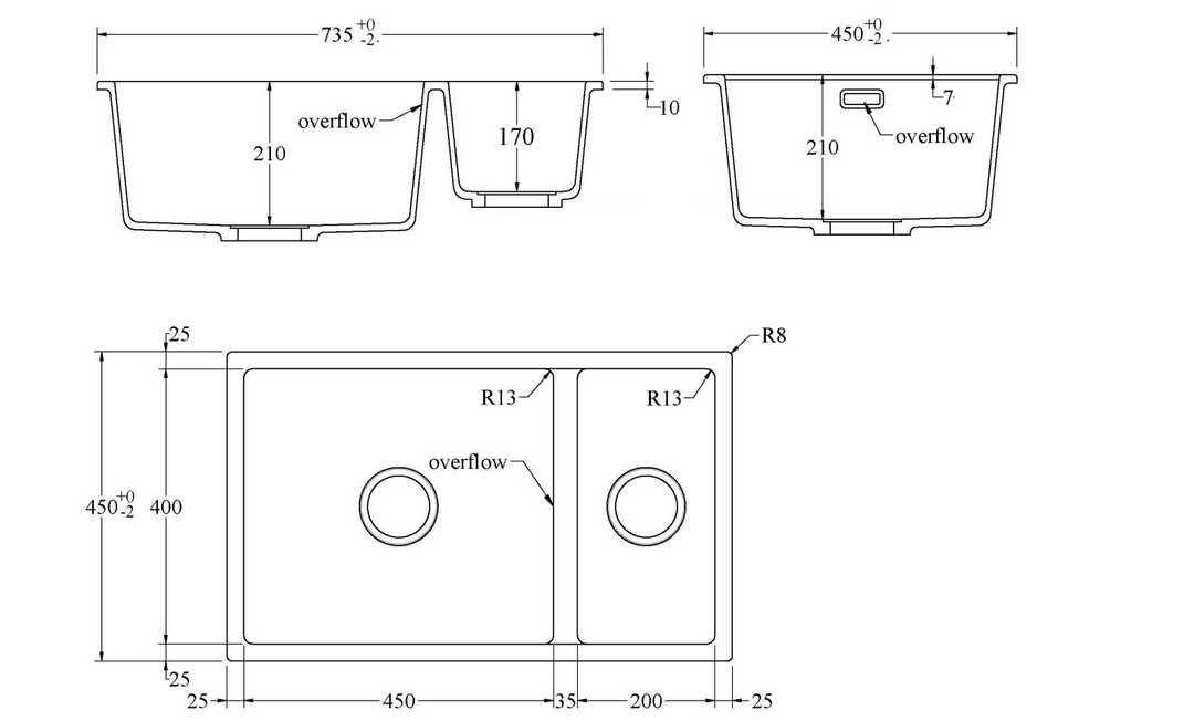 - Bowl Dimensions: 450mm W x 200mm W