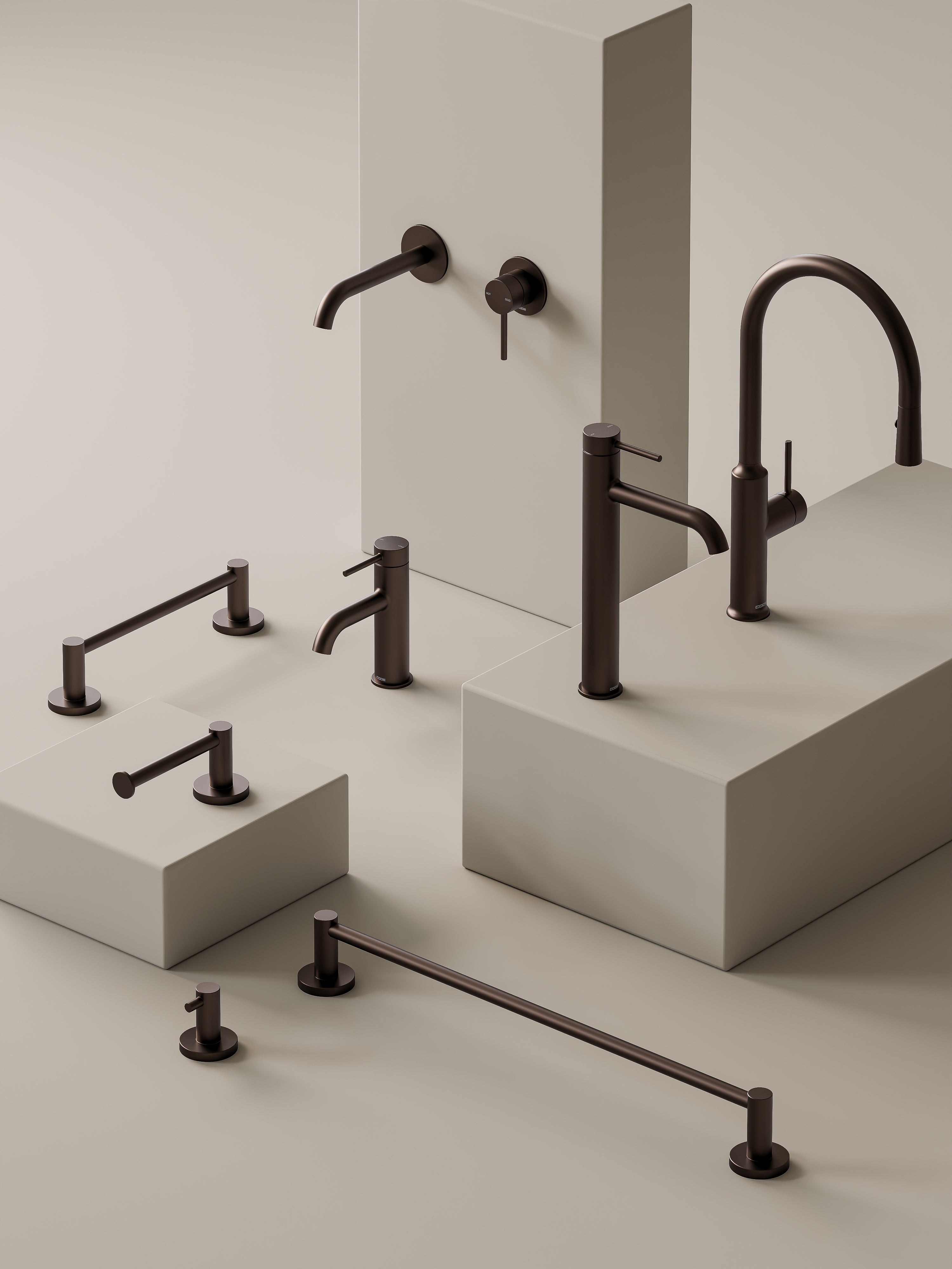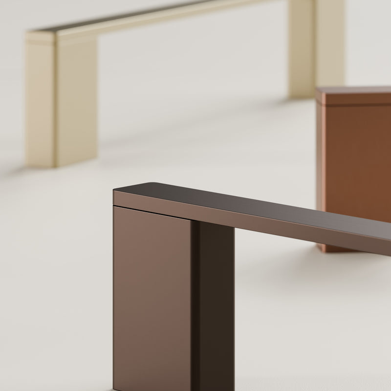 Sleek, modern bathroom accessories with clean straight lines and gently rounded corners, designed to complement your taps, hardware, and overall bathroom style.