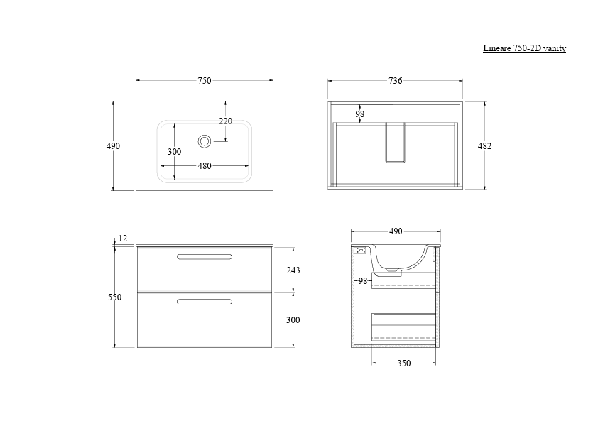 Discover the pinnacle of luxury with the Lineare 750 Pillar Double Drawer Vanity. Its carefully crafted design features a fluted drawer front, enhancing the sophistication of your bathroom.